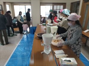 その内庚塚公民館と西・中地区・鴻ノ巣会館と東・鴻ノ巣地区が主催で毎年12月に餅つき大会を実施しています