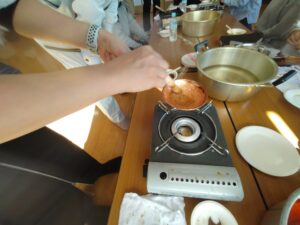訓練の後は昔懐かしいカルメ焼き体験を実施しました